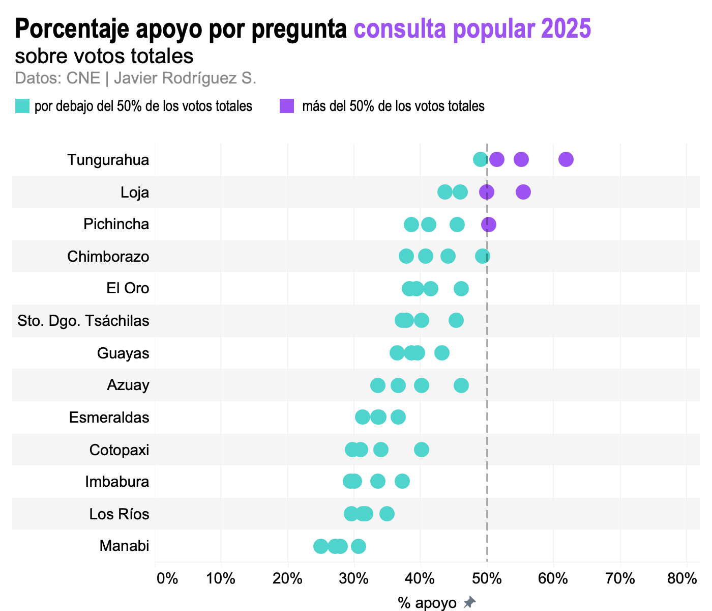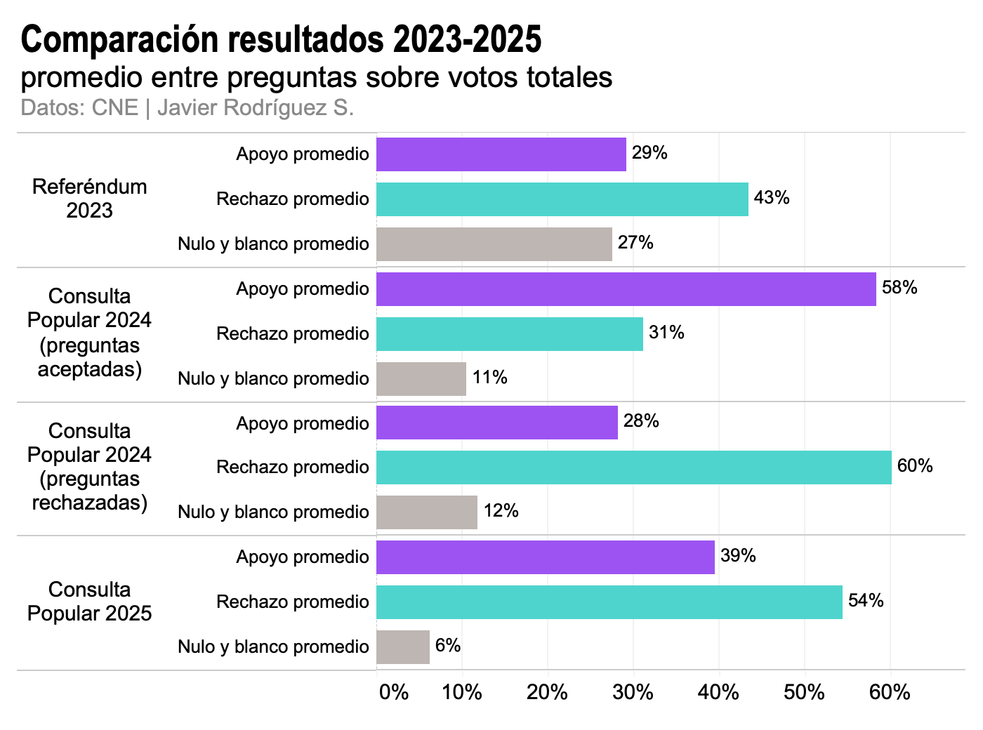 En la consulta de Noboa del 2025, la gran mayoría de los votantes depositaron un voto decidido, ya sea en apoyo o en rechazo al gobierno. El gobierno perdió porque el rechazo fue mayoritario. No hay mucho más que revisar.